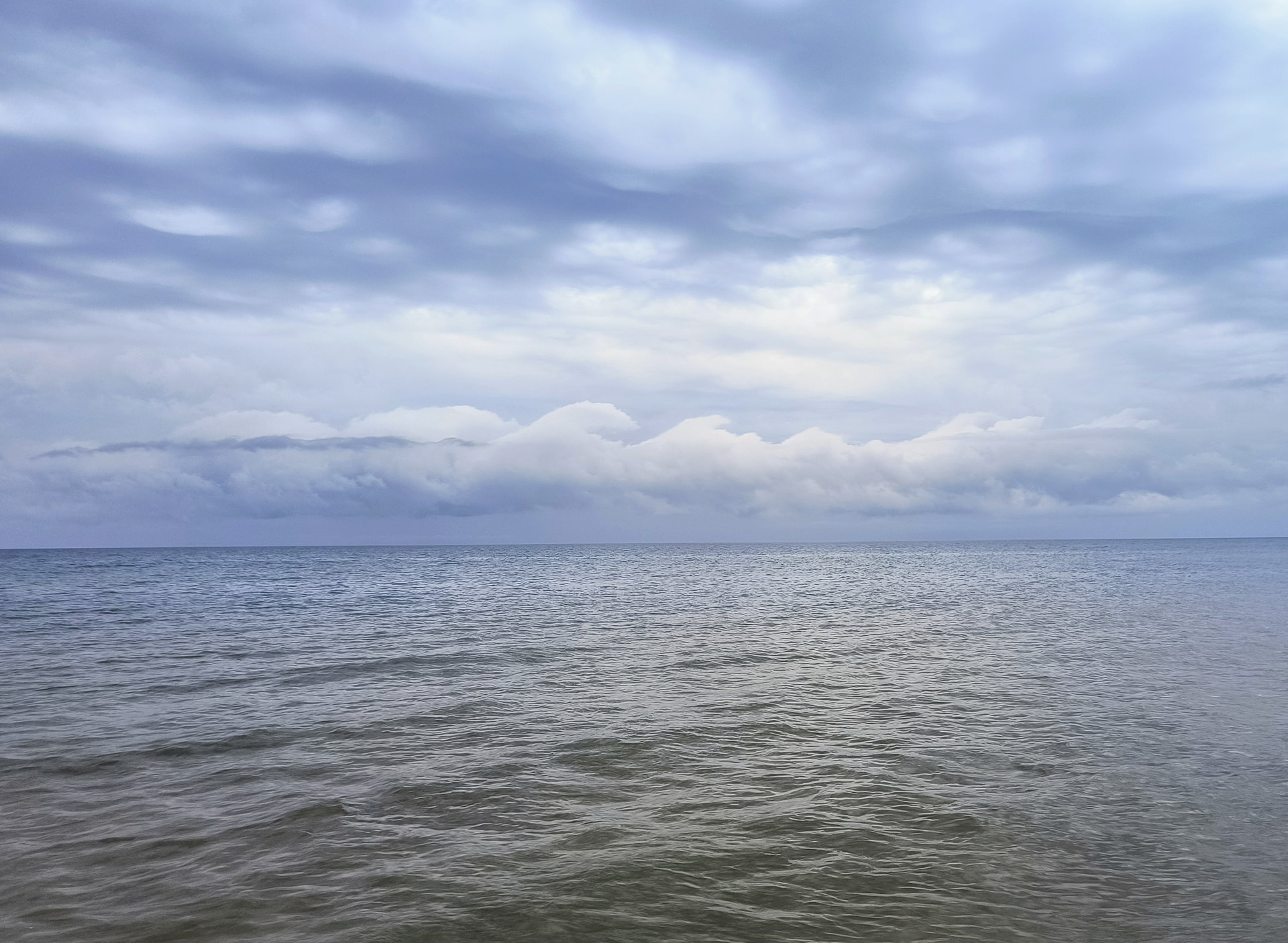 The image captures a rare meteorological phenomenon known as KelvinâHelmholtz clouds, or billow clouds, which resemble rolling ocean waves.