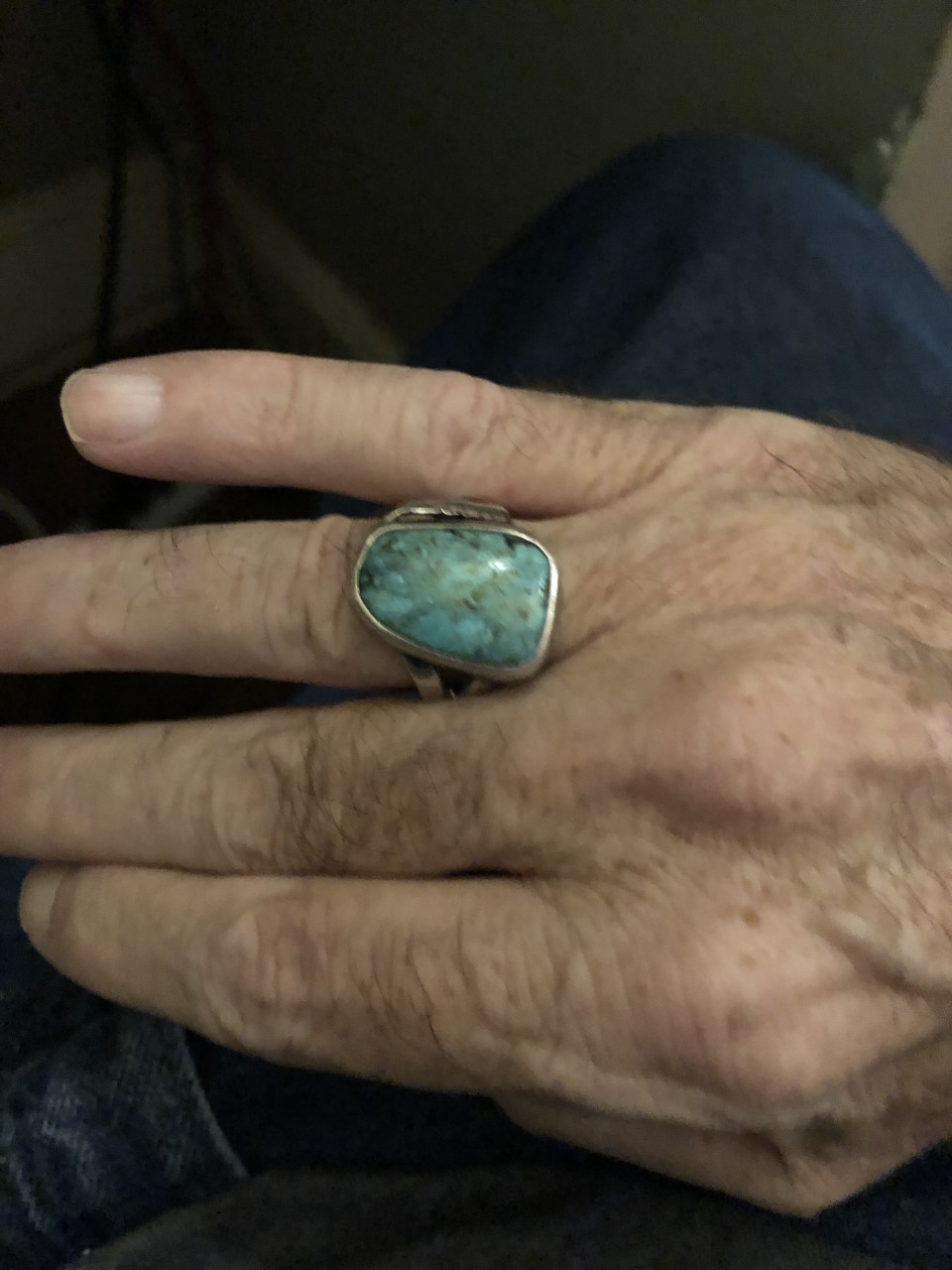 Hi, here is a turquoise ring I picked up today (ignore the inside size adjuster as it’s a little big for my finger. I wanted to know what type of turquoise, age and approx value. There is no hallmark. As always thank you for any comments and opinions.