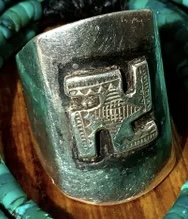 Seller states “1920’s file and saw blade stamped long silver ketoh style whirling log ring”