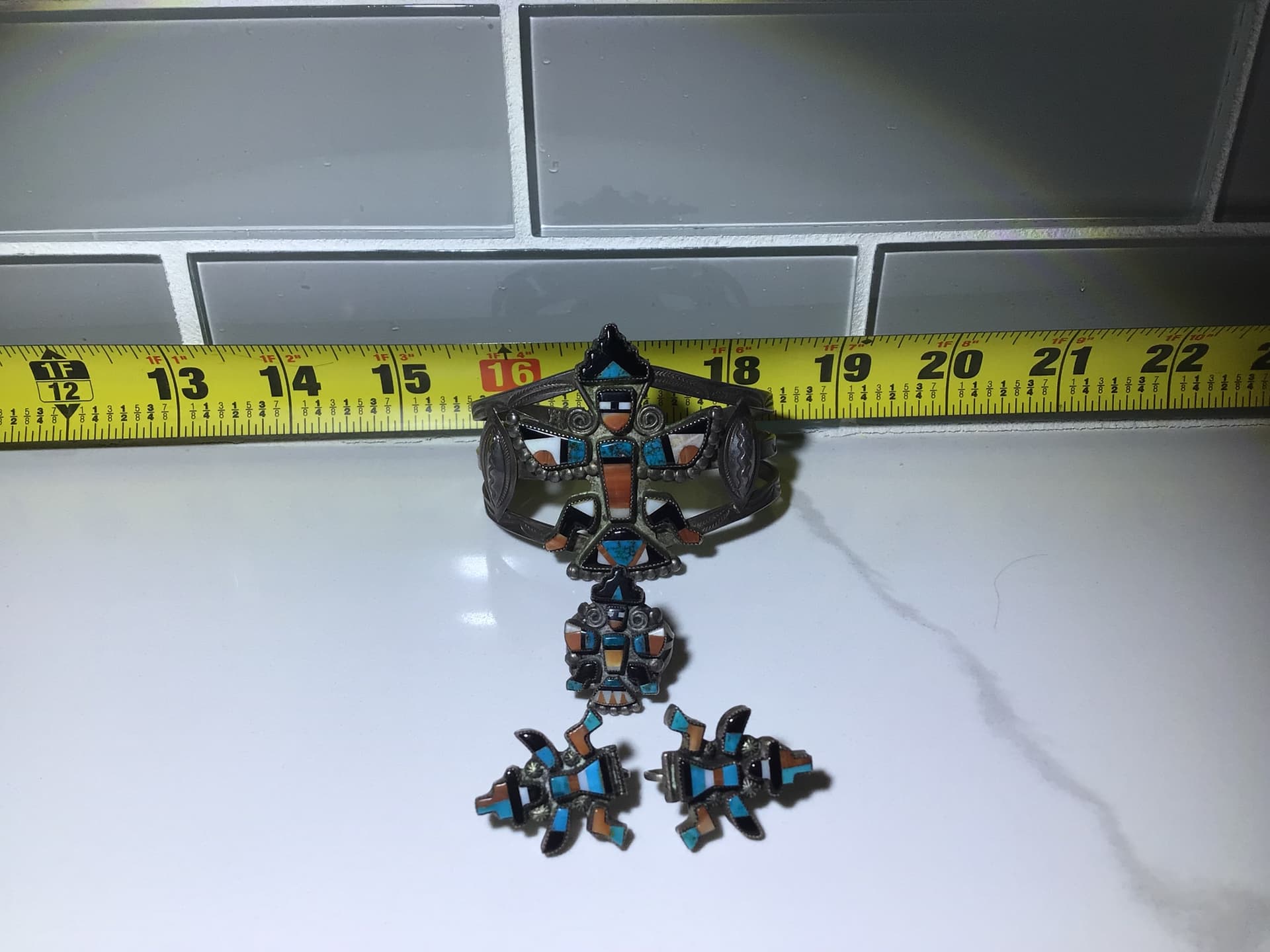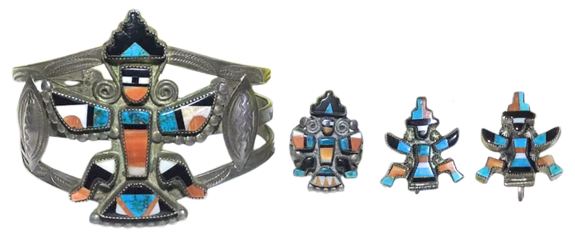 I am new here but was told this might be a good place to get value and advise on selling. My Great Aunt and her husband took my mother on a western US road trip in the early 1950’s. These items were bought then by my Aunt who was a person of means. I do not know anything about the maker other than it appears to be Zuni. It seems finely made. I have not polished the items as I was concerned doing so may affect value. All the pieces are in perfect condition no broken stones. Any advice is appreciated. Thanks inadvance
